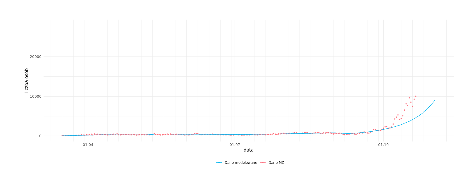 The remaining assumptions of the scenario remain unchanged, so the course of the modeled curves does not change until around December 10, when the effects of the Responsibility Stage begin to be visible.