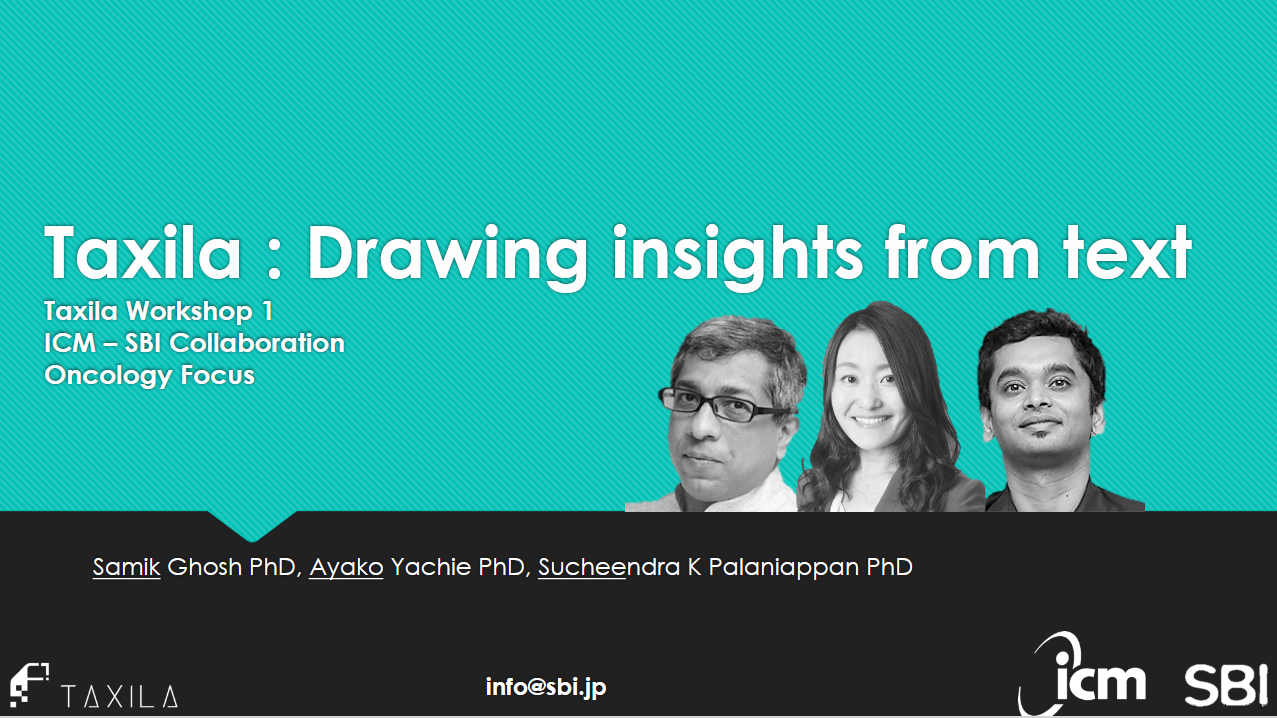 Taxila to kompleksowa platforma analityczna stworzona przez SBI Tokyo, łącząca w sobie najnowocześniejsze rozwiązania przetwarzania języka naturalnego i rozumienie języka naturalnego (NLP/NLU), co pozwala na automatyczne analizowanie tekstu z setek tysięcy artykułów naukowych. W szczególności, operując na ogromnym zbiorze publikacji, Taxila pozwala na generację hipotez naukowych łączących różne obszary wiedzy zawartej w tekście za pomocą narzędzi takich jak: analiza tagów, wyszukiwanie korelacji pomiędzy pojęciami czy wizualizacja grafowa.
